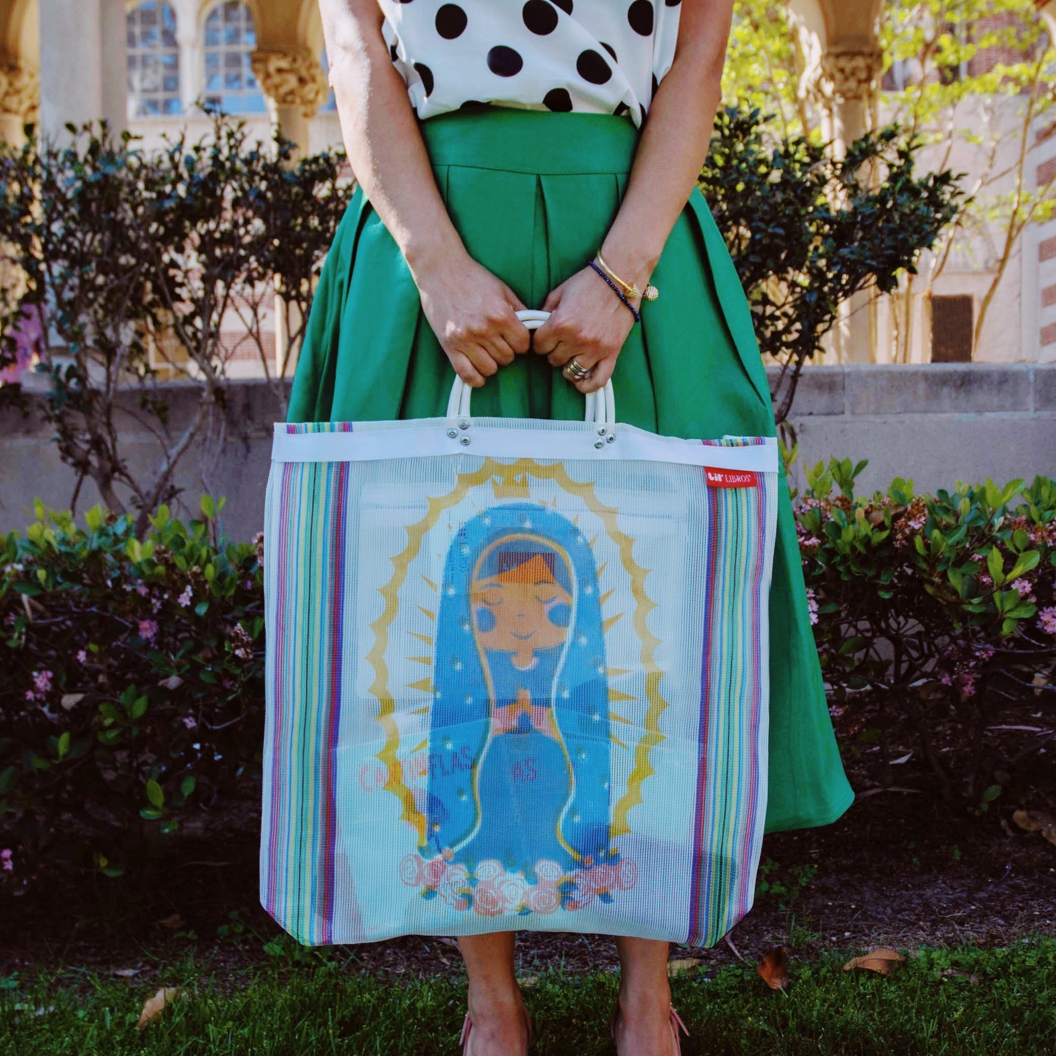 Whether you're heading out to the grocery store, relaxing in the sun at the beach, or running to your favorite bookstore, this Lil' Guadalupe Tote Bag is just what you need to carry your essentials with style.
