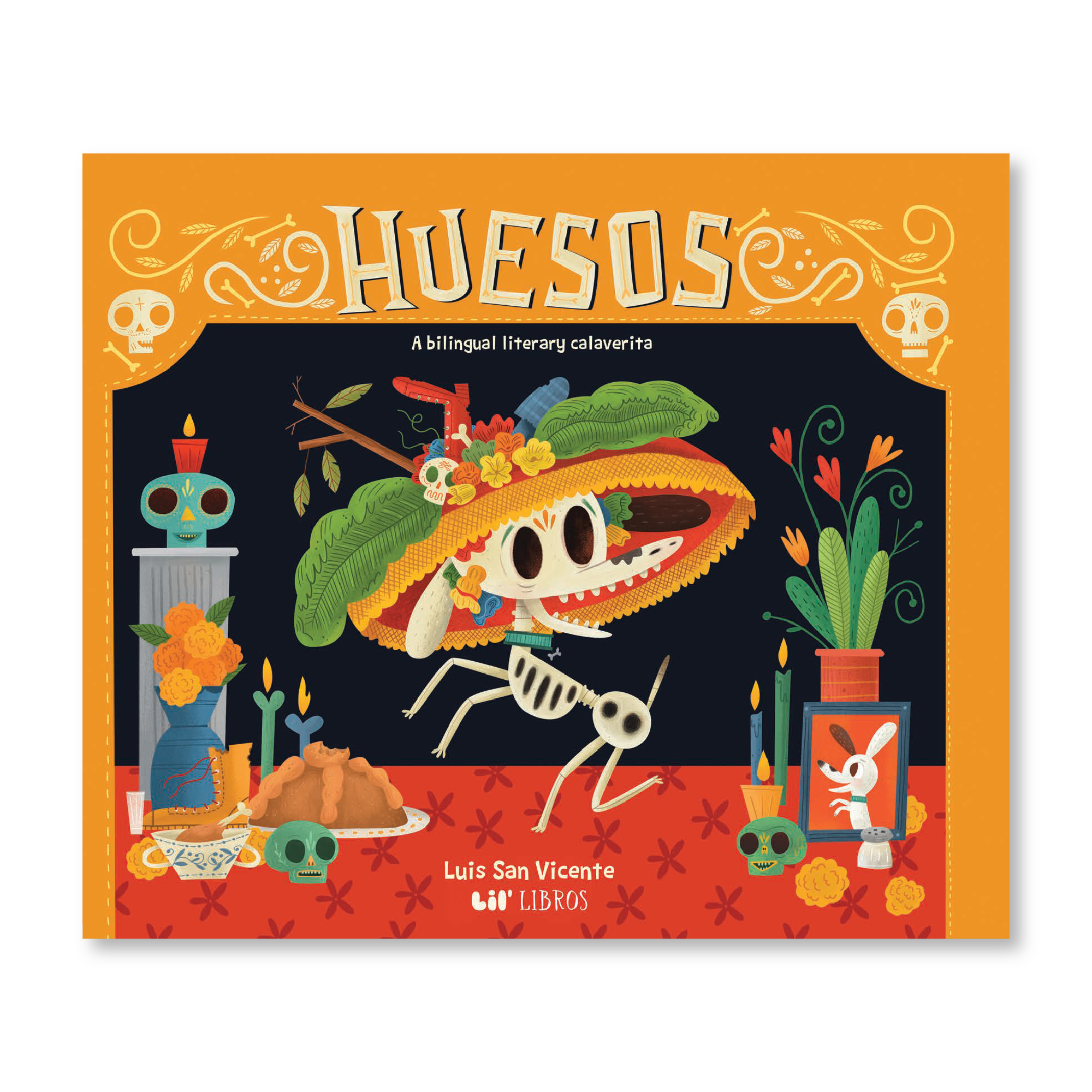 Huesos is Abuelo’s four-legged travieso, a rambunctious troublemaker with a constant ball of energy and a big bite. Nothing and no one is safe from Huesos’ mischief and chomping teeth, from Grandpa’s slippers to the neighborhood’s mailman. Until one day, Calaca Pascuala knocks on his door and takes him on a journey through the afterworld. But even there, Huesos can’t contain himself.